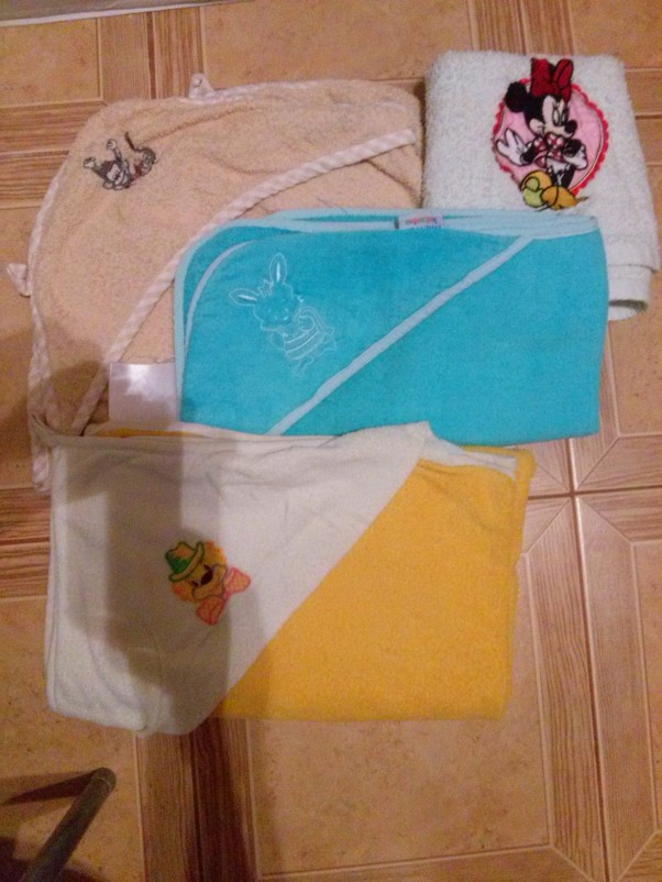Tyle powinno starczyć :) Dwa z "odzysku" od Cioci i dwa nowe. Już się doczekać nie mogę aż w końcu Cię córciu w któryś owinę, przytulę i będę mogła wdychać piękny Twój bobaskowy zapach