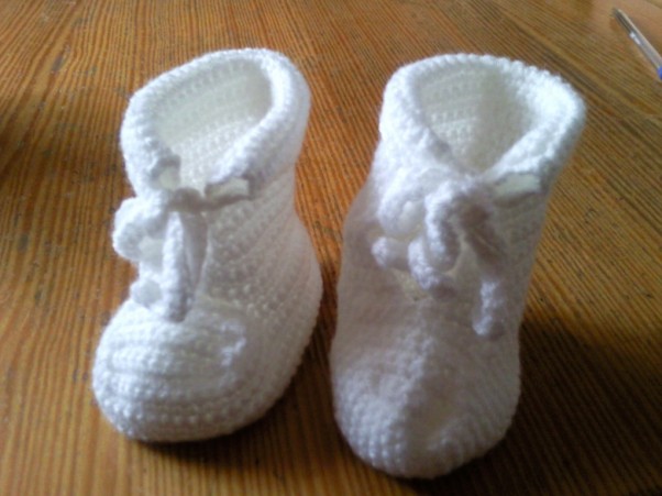 Nasz Skarb dostał kolejny prezencik od babci - piękne ręcznie robione buciki :)