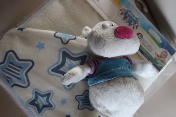 Słodki i mięciutki ręcznik kąpielowy z kapturkiem Canpol babies kolorek niebieski bo wstępnie liczyliśmy na chłopca ale no cóż córeczka na pewno się nie obrazi