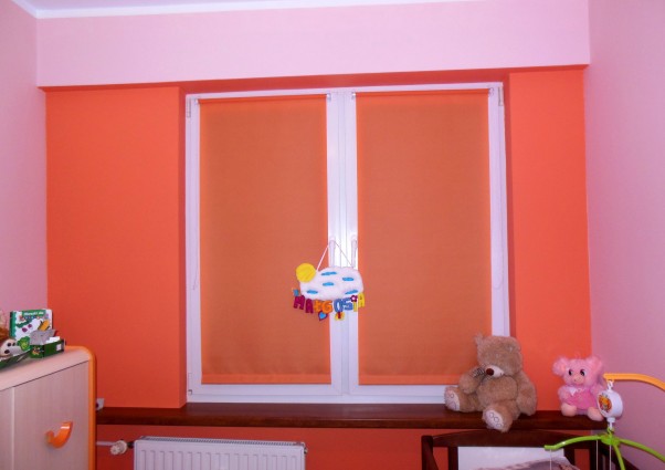 Kupiłam do Małgosi pokoju rolety koloru pomarańczowe, idealnie wkomponowały się w kolor ścian i szafki, którą ma w pokoiku. Wczoraj je zamontowałam ;) Efekt bombowy ;)