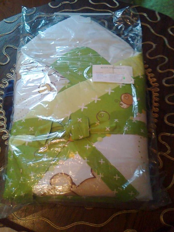 a taki ładny i z kokardką dostałaś od cioci Julitki :) jest śliczny i mogę zawiązać go byś miała cieplej i ciaśniej jak to zwykle na początku małe dzieci lubią :) będzie Ci w nim wygodnie...