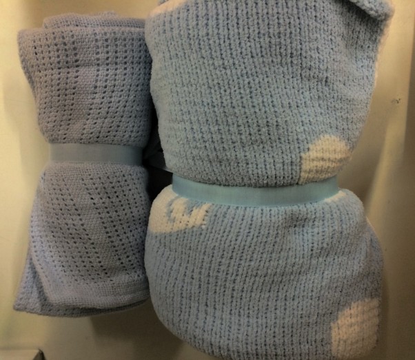 W postaci błękitnego małego i dużego kocyka-