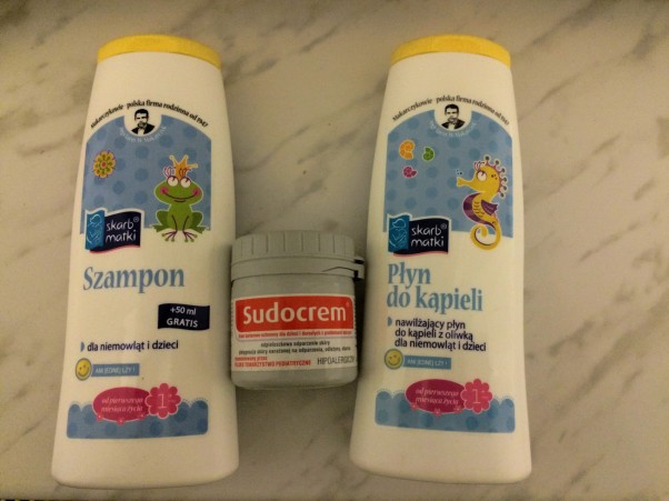 Krem do pupy, płyn do kąpieli i szampon do mycia małej czupryny