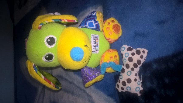 Do Emilki i kocyka dołączył piesek :) tak samo zachwyca mnóstwem kolorów szeleszcząco grzechoczącymi elementami i możliwością zaczepienia przy wózku czy łóżeczku....