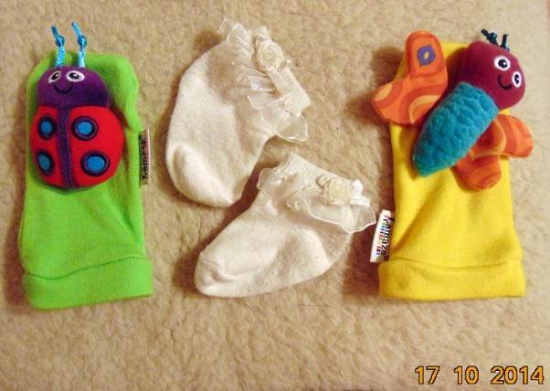 Jak na złość dziś nie było żadnych ciuszków dla małej na lumpku, ale za to wyhaczyłam 2 oryginalne skarpetki Lamaze, które nowe kosztują 13 zł za sztukę a tu dałam za 2 sztuki i jeszcze za te kremowe z różyczką 0,68gr, także nie jest źle :)