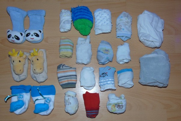 Kupiłyśmy dużo par skarpetek i 2 pary rajstopek, z tego co mówiła mi kuzynka przyda się ich tak dużo. A wyszły nas one bardzo tanio, może za piękne nie są, ale najważniejsze żeby dzieciątku było ciepło.