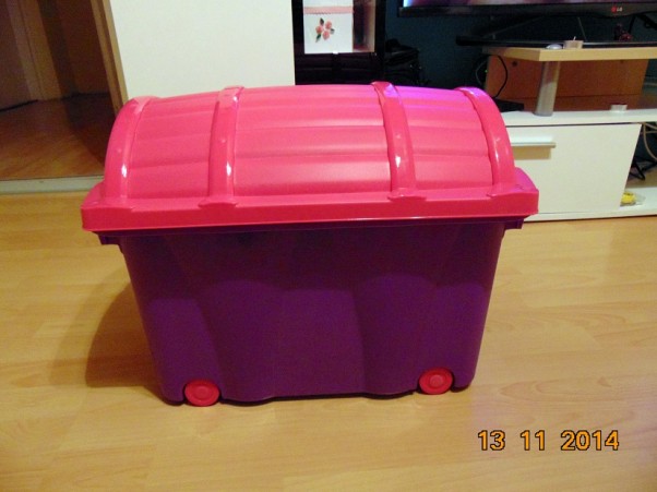 Ze względu na to że mam już dużo pluszaków dla Julki a nie chce żeby wszystkie ją otaczały na początku, bo to idealne miejsce dla kurzu i roztoczy, kupiłam skrzynię na zabawki. Jest tak pojemna, że upchnęłam do niej wszystkie miśki hihi :) w ogóle ma ładne kolorki, bardzo mi się podoba :)