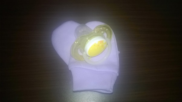 Moja 4 letnia bratanica Lilianka jest bardzo zaangażowana w przygotowania. Gdy przyjeżdża z rodzicami zawszę ma coś ze sobą dla dzidziusia. Wybiera misie pośród swojej domowej kolekcji i przynosi maleństwu, oddaje ulubiony kocyk, sortuje swoje ciuszki z dzieciństwa i inne rzeczy które za każdym razem przywozi. Coś wzruszającego. Jestem w 7 miesiącu ciąży, moje maleństwo jest przebiegłe i nie chce się ujawnić nie wiem czy będzie to chłopiec czy dziewczynka. Lilianka twierdzi że nie ma się co martwić ona lubi wszystkie kolory. A świąteczny prezent od niej jest prześliczny. Fioletowe łapki i żółta świecąca pypka aventa. Mała ma pomysły.