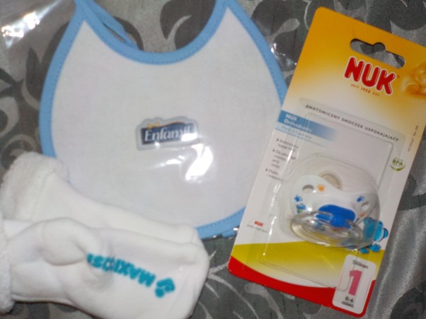 Odwiedził nas listonosz i zostawił paczuszkę z prezentem dla Hani od Bezpiecznego Malucha. Dzięki temu nie musimy kupować smoczka dopóki nie przekonamy się czy Hania będzie chciała go ssać. Oprócz spodziewanego smoczka w kopercie znaleźliśmy jeszcze śliniaczek i ciepłe skarpeteczki. Cieszy nas każdy drobiazg dla Naszej córeczki ;-)