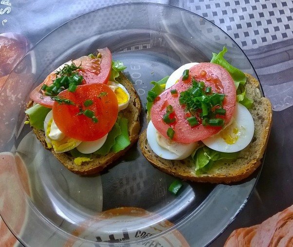 Dziś na śniadanie szef kuchni podał dwie kromki chleba razowego z sałatą, jajkiem i pomidorem. Pamiętajmy, że zdrowe odżywianie w ciąży zapewnia lepsze zdrowie naszej pociechy w brzuszku