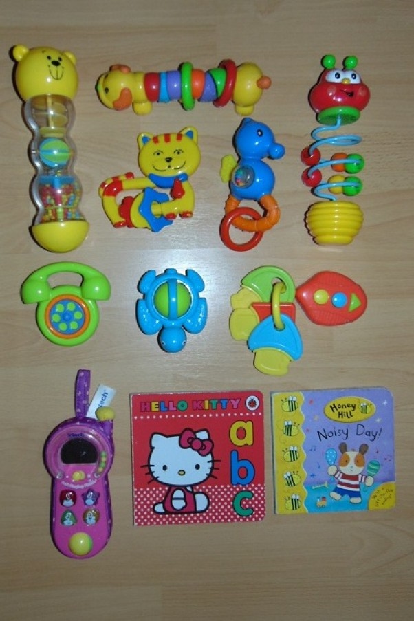 Kolejne prezenty dostałyśmy od Pauliny po Natalce :) Torbę zabawek i pluszaków ( dodam je na kolejnym zdjęciu). Śliczne są i takie kolorowe, ale się cieszę :P
