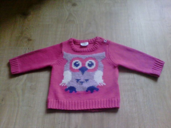 W chwili obecnej w wystrojach pokoi dziecięcych jak i w garderobie najmłodszych prym wiodą sówki. Muszę przyznać, że i mnie urzekły :) Tak więc Liliana jako modna dziewczynka musi coś z sówką mieć :) Dzisiaj kupiłam dla niej taki oto sweterek. Mąż kręci nosem bo różowy ale chęć posiadania ciuszka z sówką była silniejsza. Nie mogłam się oprzeć :)