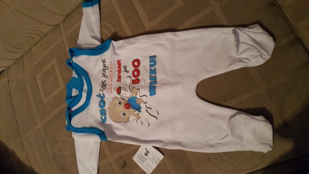 Bardzo fajne i bardzo zabawne śpioszki z śmiesznym napisem...A na dodatek są takie malutkie co daje mi do zrozumienia jak bardzo małe dziecko się urodzi.....