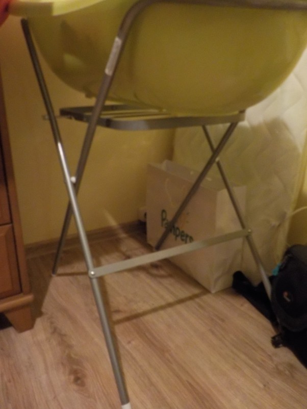 Udało nam się dzisiaj kupić używany stojak pod wanienkę. Dzięki temu będziemy mogli kąpać Hanię w pokoju, będzie wygodniej, cieplutko i blisko przewijaka i wszystkich potrzebnych akcesoriów ;-)