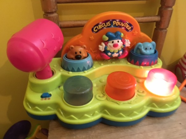 Strasznie mi się podoba. Leci sobie muzyczka i świeci się światełko w różnych miejscach. Trzeba uderzyć w podświetloną akurat kulkę załączonym młoteczkiem, wtedy wydaje fajny dżwięk i dziecko się cieszy. Napewno super działa koordynacyjnie na rosnące dziecko.Również bierzemy do siebie