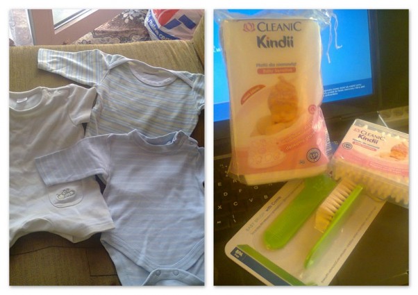 Z okazji Świąt dostaliśmy od rodziców kolejne ciuszki dla małego, a sami będąc na piątkowych przed świątecznych zakupach kupiliśmy parę drobiazgów: grzebyczek + szczoteczkę do włosków, płatki higieniczne oraz patyczki do uszu dla Synusia :D