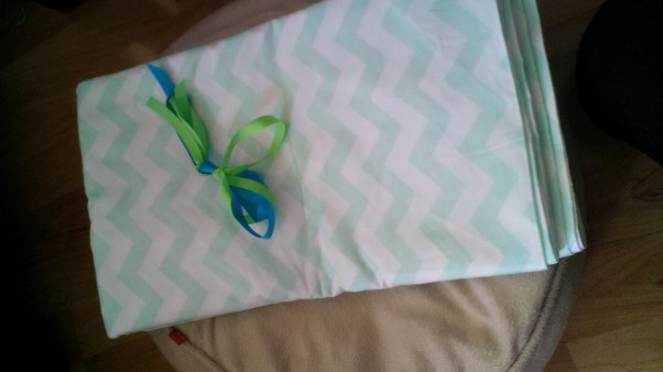 zlapala mnie twórczosc...kupilam material w mietowe zygzaki i bede szyla z niego dla dzieciecia ;) wstawki do organizera, ochraniacz - poduszki oraz moze cos jeszcze jak zostanie materialu :)