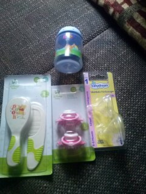 Mamo!!!szczotka do włosów i smoczki uspokajacze ja rozumiem ale po co mi ta butelka i smoczki do niej?może jeszcze nie wiesz ale ja chcę pobić rekord i ssać jak najdłużej Twoje mleko :) więc te butelki są zbędne chyba że ja o czymś nie pomyślałam ;) ale wierzę że chcesz dobrze....