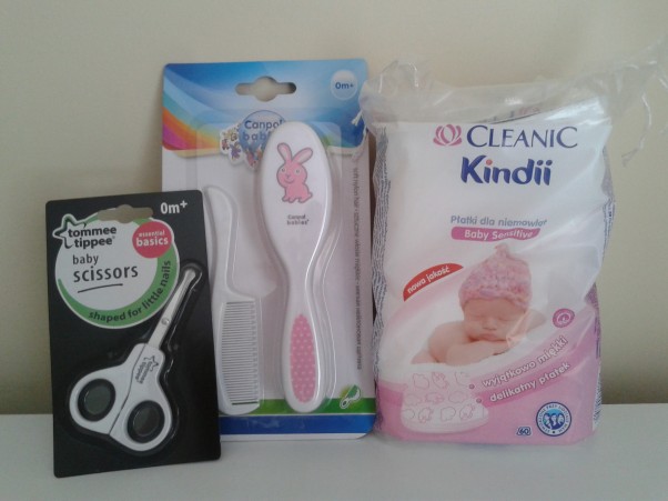 Kompletujemy powoli wyprawkę już w najdrobniejszych szczegółach, bo coraz mniej czasu zostało... Tym razem mamy szczoteczkę do włosków i grzebyczek, nożyczki do paznokci (nie lubię cążków więc nawet nie szukałam zestawów łączonych, ale dużo mam woli obcinać paznokcie cążkami -ja nie :) ) oraz płatki kosmetyczne.