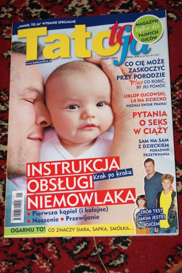 Zawsze piszę co ja dostałam od ... bądź kupiłam jeśli chodzi o ciążę i wspaniały cud którego doświadczam każdego dnia związanego z przyszłymi narodzinami Synka. Dzisiaj dopiero zdałam sobie sprawę że jestem wielką egoistką. Przecież nie tylko ja oczekuje cudu narodzin. Każdy widzi że jestem w ciąży, nieraz doświadczyłam już okazania przez innych kultury w autobusie jak również w kolejce do sklepu. Jednak znowu rozpisuje się o sobie. Mianowicie dziś po raz pierwszy ujrzałam w kiosku gazetę pod tytułem tato to ja. Jest to wydanie poświęcone ojcostwu. Przyznam się że z zaciekawieniem przeczytałam parę artykułów. kupiłam tą gazetkę mężowi, był zachwycony. Pierwszy raz z tak wielkim zaciekawieniem czytał artykuły poświęcone naszej kruszynce, jak przewijać, czy kąpać niemowlaka. Wzruszyłam się patrząc na niego. Może się powtórzę ale naprawdę poczułam się jak egoistka. Jednak jestem zadowolona, że chociaż pod koniec ciąży ale już wiem że mój wspaniały mąż również bardzo mocno przeżywa ciążę razem ze mną, ciążę w której on nie stoi z boku ale również jak ja jest jej członkiem.