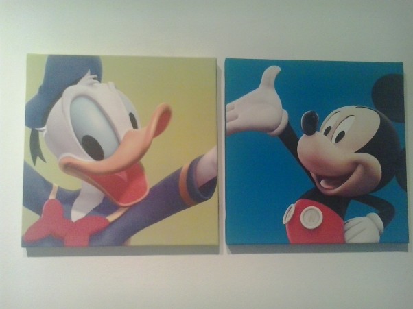 Nie tak miało być! Tematem przewodnim pokoiku miały być zygzaki i drzewo a nie postacie z kreskówki! Co to to nie! Ale cóż tatuś wrócił do domu z takimi oto obrazkami i gdy pewnego popołudnia zdrzemnęłam się zawiesił je na ścianie. Do śmiechu mi nie jest ale mam jeszcze trochę czasu na przekonanie męża do swojej wizji.