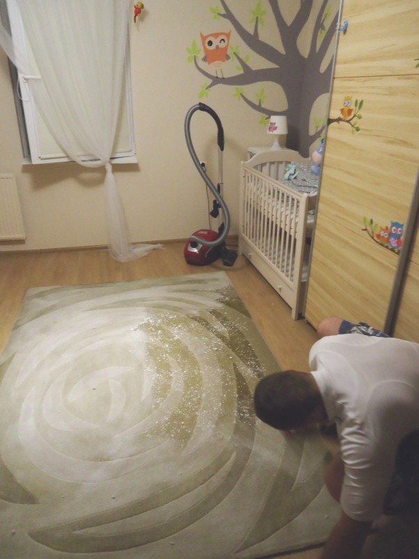 Mąż postanowił dołączyć swoją pomoc do przygotowań na pojawienie się synka i wyprał/odświeżył dywanik w pokoiku. Aby był czyściutki i pachniał świeżością.