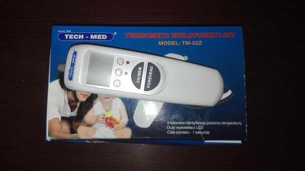 Apteczka już wyposażona w bezdotykowy termometr, z którym łatwiej mierzyć temperaturę maluszka.