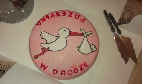 zamówiłam taki na jutro na baby shower jaki będę robić dla koleżanek :) i dzisiaj właśnie go odebrałam :) ale muszę do sąsiadki do lodówki wynieść bo mi moje szkraby zjedzą ;)