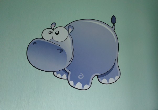 Aby tradycji stało się za dość na kolejnej ścianie pojawił się dziś Hipcio :D Ostatnio znalazłam w internecie świetny sklep z naklejkami na ścianę (Szabloneria.pl). Jak tylko zobaczyłam, że mają w swojej ofercie hipopotama, wiedziałam, że muszę go kupić :) Wybór zwierzątek, postaci z bajek i innych dziecięcych motywów mają dość spory. Znajdzie się coś zarówno dla małej księżniczki jak i małego poszukiwacza przygód :) Na zdjęciu tego nie widać ale Pan Hipcio ma ponad 60 cm :) Jak na hipopotama przystało prezentuje się okazale. Hipcio zamówiony został trochę "na próbę" ale teraz już wiem, że naklejki z tego sklepu nie dość, że prezentują się świetnie to są też bardzo dobrej jakości. Myślę, że niedługo na ścianach zagoszczą kolejne zwierzątka ich produkcji ;)