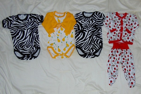 Kurier przyniósł dzisiaj ubranka , które zamówiłam. Była darmowa dostawa to skorzystałam. 2 bodziaki na 56, 1 na 62 i komplecik też na 56, ale wydają się jakieś duże :/ trochę jestem nie zadowolona z tej rozmiarówki, ale materiał super, wzory i kolory również :)
