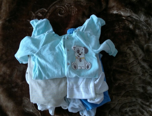 Siostra przywiozła nam ubranka dla malucha po swoim synku. Właściwie rozmiary na pierwsze pół roku :) Tutaj śpiochy, spodenki i pajace