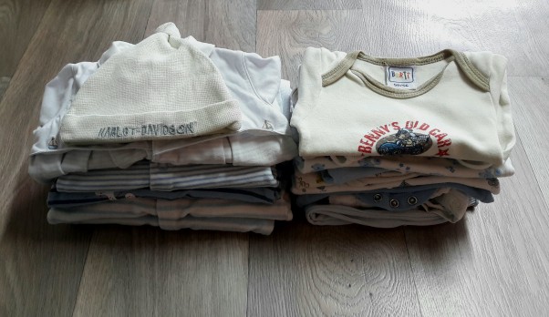 Moja mama przyniosła ze strychu i wyprala ubranka po moim młodszym bracie które się jeszcze zachowały. Czyli Tymuś będzie miał ubranka po wujku starszym od niego o 12 lat.