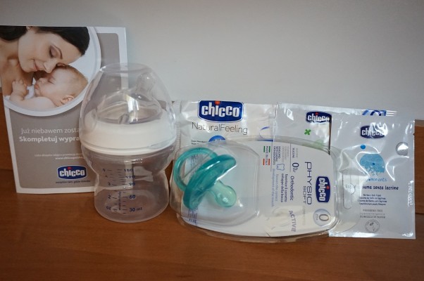 Upominek od firmy Chicco- buteleczka, smoczek, próbki wkładek laktacyjnych i płynów do kąpieli :)