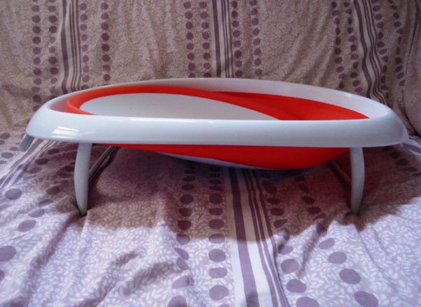 Dostaliśmy nagrodę, którą wygrałem w przygotowaniach. Wanienka jest nowoczesna i nam nieporadnym rodzicom, którzy w życiu dziecka nie kąpali przyda się bardzo. Składa się naprawdę bardzo płasko więc w naszej klaustrofobicznej łazience zmieści się. Jest porządna i stabilna. To spostrzeżenia mojej Pauli.