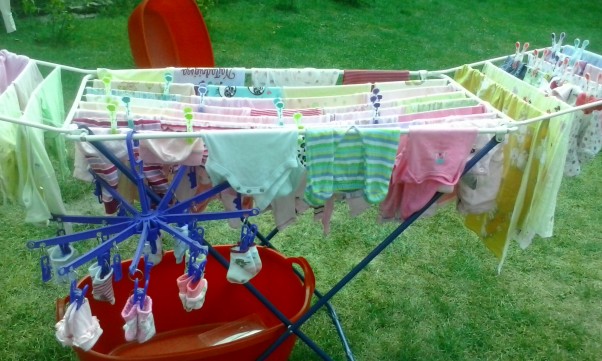 Korzystając z pięknej pogody poprałam ciuszki dla niuni żeby czekały już poprasowane i poskładane:)