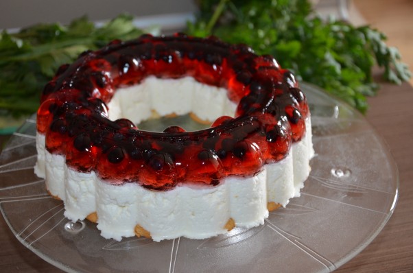 A na koniec deser :) sernik na zimno z galaretką i owocami w upalne dni jest świetny...ja i synuś jesteśmy zadowoleni :)