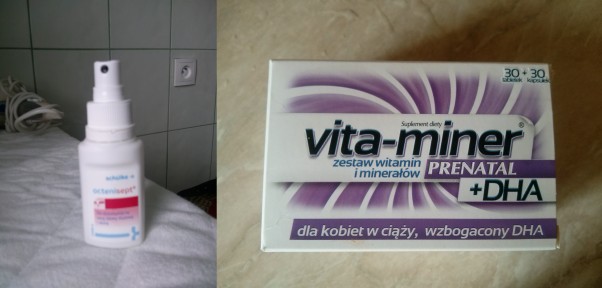 Odwiedziliśmy naszą znajomą w aptece i dostaliśmy w prezencie witaminki, octenisept a na poniedziałek będzie gotowy spirytusik 70% do pępuszka w razie gdyby octenispet nie dał sobie rady :D