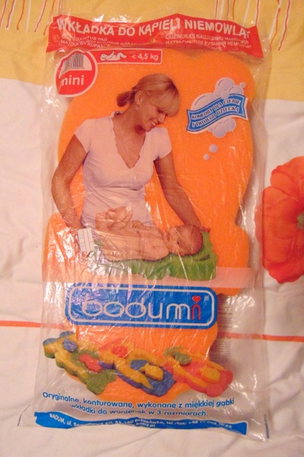 Dzisiaj odebrałam wyniki GBS i wszystko ok. Chciałam dokupić parę rzeczy żeby wyprawka już była kompletna, ale udało nam się dostać tylko wkładkę do kąpieli w najmniejszym rozmiarze a takiej właśnie szukaliśmy bo wszędzie są tylko te większe. Dobrze, że pomarańczowa, do żółtej wanienki w sam raz.