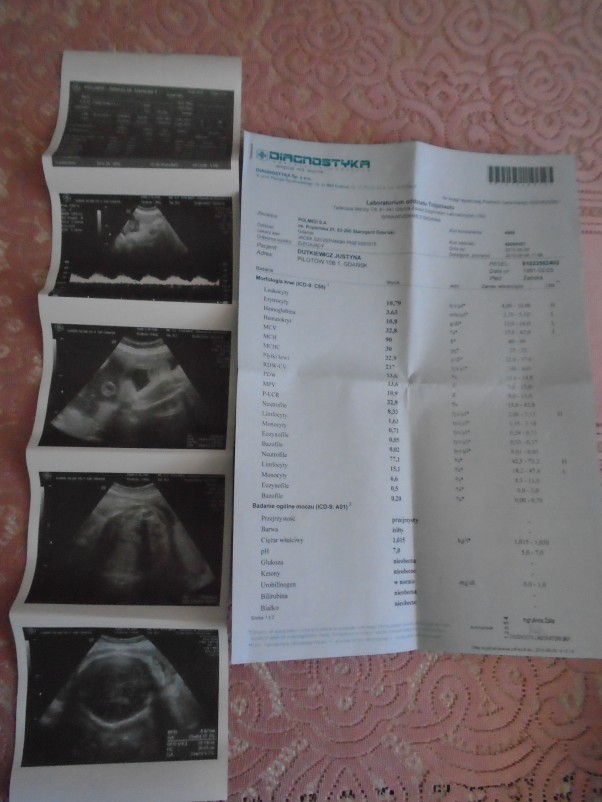 odebrałam aktualne wyniki badań i robiłam USG, synuś ma już 34 tyg. i waży 2460g