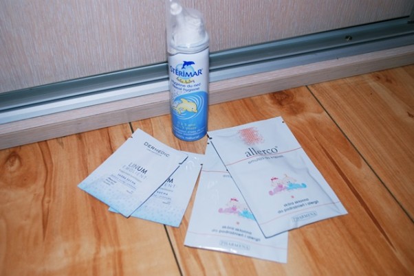 Będąc w aptece przy okazji zakupiłam wodę morską , która na pewno mi się przyda do oczyszczania noska córeczki. Otrzymałam również próbki emulsji do kąpieli od pierwszych dni życia oraz krem nawilżający do buźki.