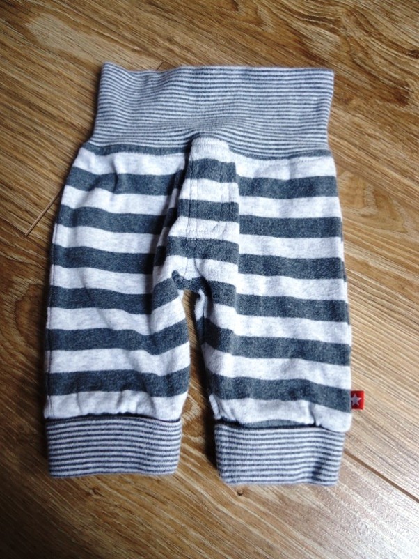 Sama nie wiem, kiedy powinno się ją kompletować. Mówią, że nie za wcześnie, po co zapeszać idt...ale podczas moich lumpkowych zakupów skusiłam się na pierwsze spodenki dla mojego maleństwa. Oszalałam na punkcie szarości i większość wyprawki będzie opierała się właśnie na szarościach i bieli...to neutralna kolorystyka, a kolorowe dodatki do szarego pasują niemal wszystkie:)