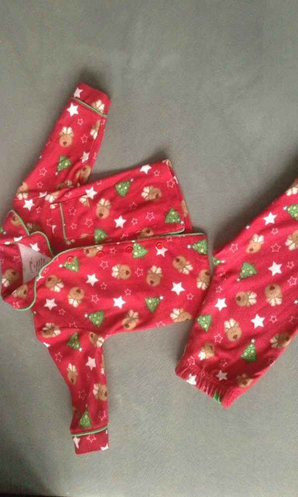 Jak fajnie na wyprzedaży coś upolować. W sam raz dla mojej dzidzi na święta. Rozmiar 6-9 miesięcy śliczna piżamka na święta.