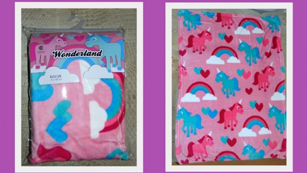 Po południu poszłam do sklepu po wodę brzoskwiniową, która w ciąży bardzo mi smakuje i przypadkiem zobaczyłam kocyki dla niemowląt :P ten z jednorożcami wpadł mi w oko, ponieważ nie jest tylko typowo różowy jak dla dziewczynki, ale ma akcenty czerwieni, bieli, błękitu i turkusu :) zaraz obok była promocja na pampersy więc wzięłam jedną paczkę, ale do narodzin malutkiej już nie będę więcej kupowała, bo może się okazać że nie będzie mogła ich nosić ( ja jak byłam mała mogłam tylko tetrowe, bo jednorazowe mnie uczulały) . Także ja poszłam tylko po wodę :P