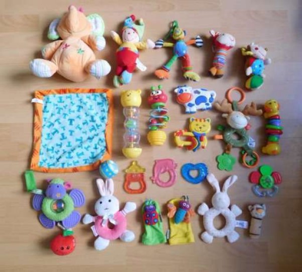Byłam dzisiaj z Julką w naszym schowku, bo szukałam papierów do Polski i znalazłyśmy sporo rzeczy dla maluszka między innymi : buteleczkę, smoczki, kołderkę ale także zabaweczki. Chciałam je później donieść, ale Julii już wpadły w oko i bawiła się zabawkami dla niemowlaka hahaha :D wysterylizujemy wszystkie zabaweczki jak już maluszek będzie na świecie :)
