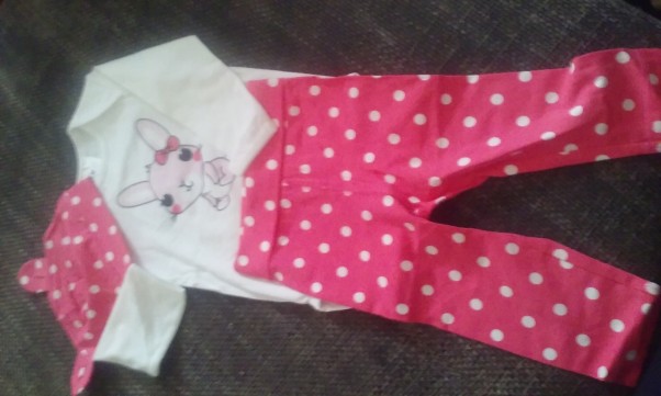 takie ładne cudo nam przyszło dzisiaj do kolekcji Twoich nowych ciuszków :) tak bardzo chcę jeszcze założyć Ci to w te lato a jak nie to zostanie na następny rok :) mała różowa kropkowana myszka :)