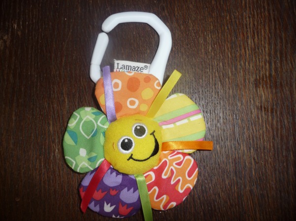 Zawieszkę dostaliśmy od bratowej. Jest cudowna! Ma szeleszczące kolorowe płatki kwiatka i metki. Zawieszka od Lamaze bardzo mi się spodobała, muszę sprawić mojemu dziubaskowi więcej takich cudnych cudeniek od Lamaze :)
