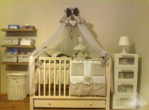 Pościelka na zmianę do łóżeczka naszego synka, już wyprana i wyprasowana. Tak prezentowała się czekając wcześniej na Twoją siostrzyczkę. Teraz będzie służyć i Tobie gdy będziemy musieli wyprać tę, zamówioną specjalnie dla Ciebie.