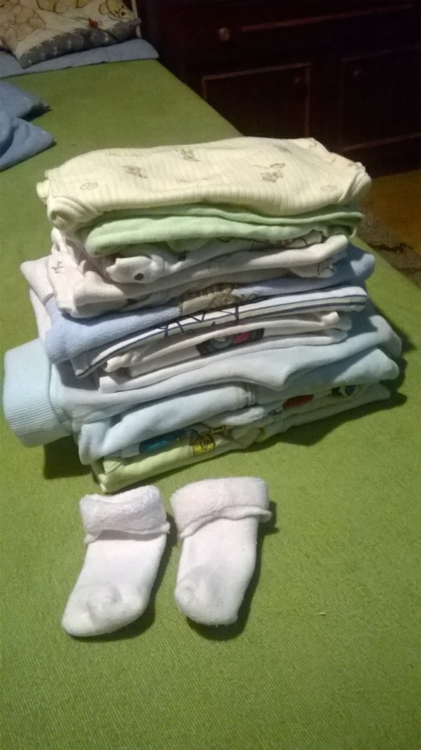 Według pierwszego usg właśnie noszę w sobie chłopca. Z tej okazji kilka ciuszków po starszym bracie już czeka.